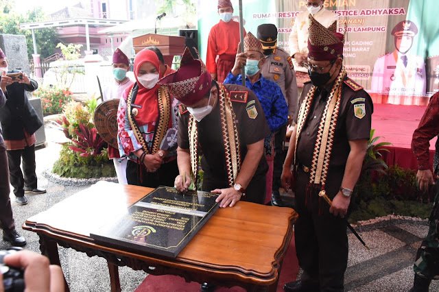 BANDARLAMPUNG – Kepala Kejaksaan Tinggi (Kajati) Lampung, Nanang Sigit Yulianto S.H., M.H menghadiri dan meresmikan rumah Restorative Justice (RJ) “Khagom Seandanan” Kejaksaan Negeri Bandar Lampung, di Kelurahan Negeri Olok Gading, Kecamatan Telukbetung Barat,kota Bandarlampung. Jum’at (01/4/22).