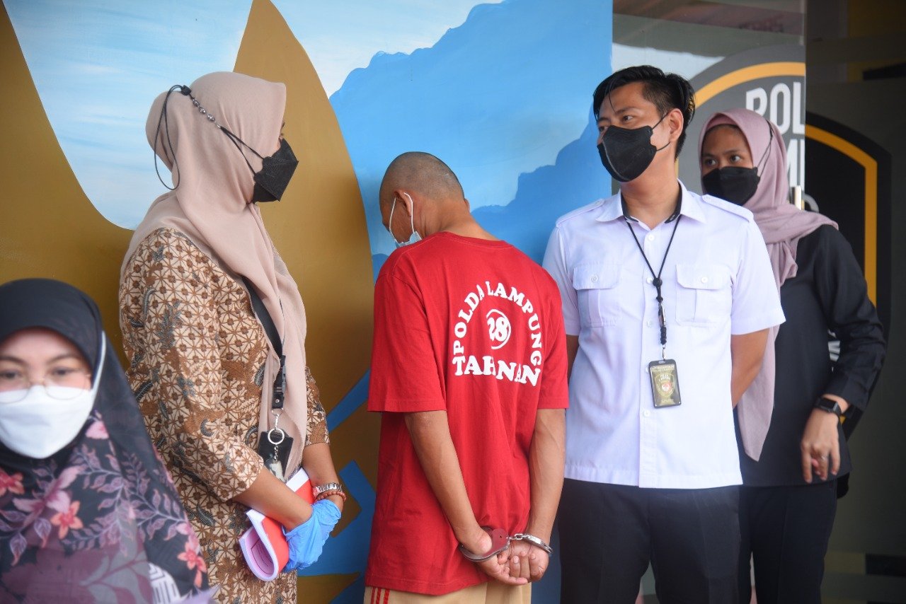 Wadireskrimum Polda Lampung, AKBP Hamid Andri Soemantri dengan didampingi Kasubbid Penmas Bid Humas Polda Lampung, AKBP Rahmad Hidayat mengatakan, polisi mengamankan pelaku pencabulan terhadap korban berinisial MRF (8) berdasarkan laporan keluarga korban pada tanggal 14 Maret 2022.