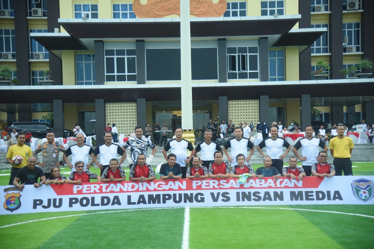 Dalam pertandingan persahabatan tersebut, tim sepak bola PJU Polda Lampung berhasil menumbangkan Insan Pers 3-1.