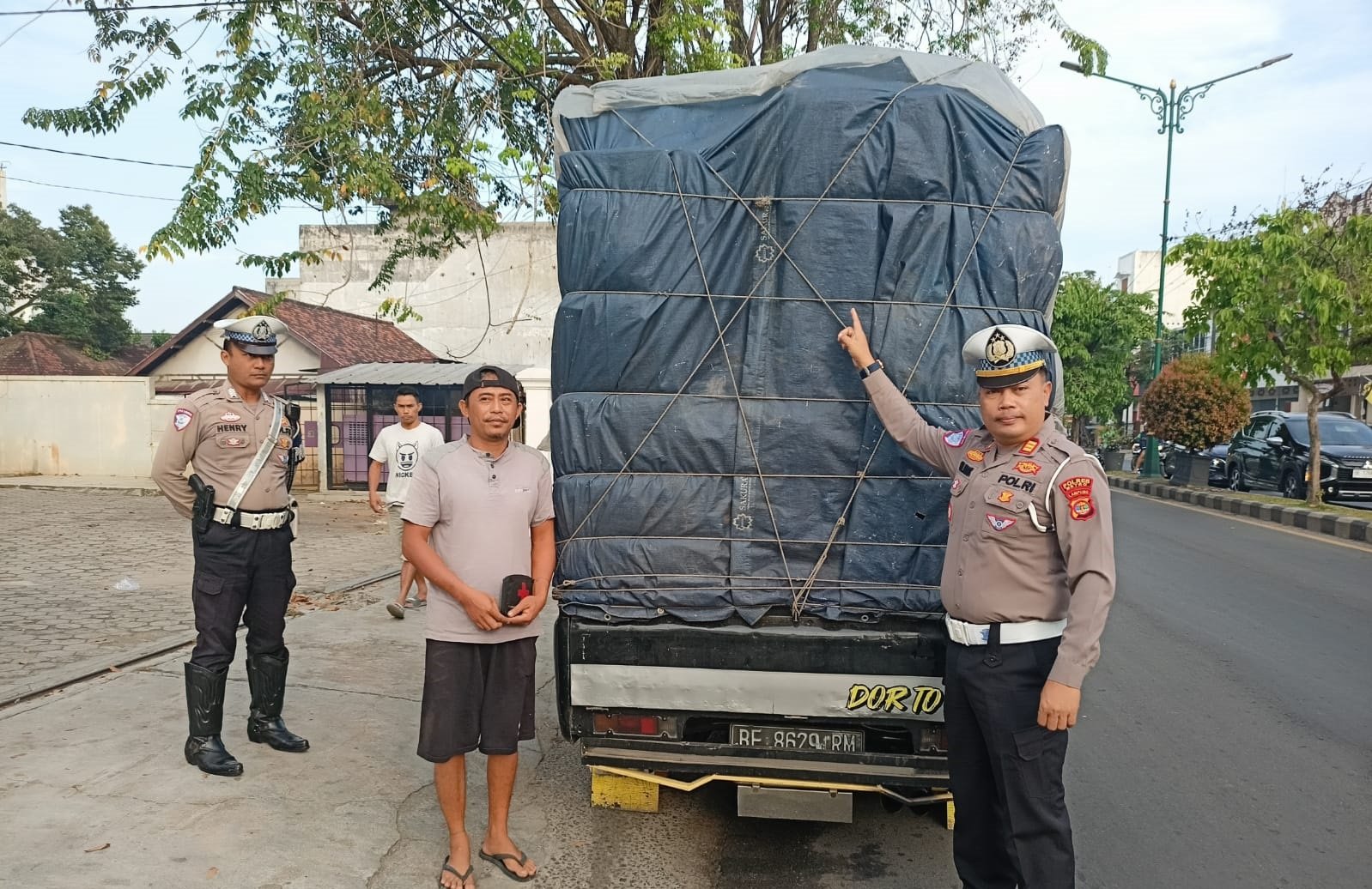 AKP Sulkhan S.H., M.H. menjelaskan, leaflet dan bener yang dibagikan berfungsi sebagai media komunikasi langsung untuk meningkatkan pemahaman pengendara mengenai risiko kendaraan yg overdimensi dan overload.