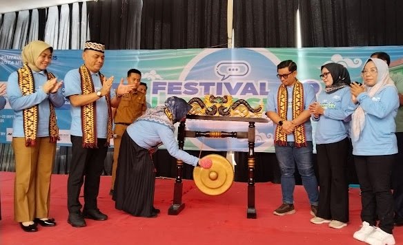 Walikota Metro H. Bambang Iman Santoso membuka kegiatan Festival Literasi 2025 Kota Metro yang berlangsung di halaman Dinas Perpustakaan dan Kearsipan Daerah Kota Metro, pada Selasa 23/9/2025.