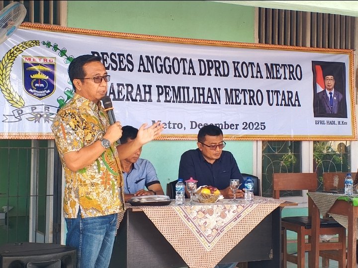 Metro, djurnalis.com-Program BPJS Kesehatan gratis bagi masyarakat Kota Metro dipastikan tetap berjalan pada 2026 mendatang. Hal itu ditegaskan, Efril Hadi, M.Kes (Anggota DPRD Metro), Dapil Metro Utara saat melaporkan kegiatan reses di kediaman RT 28/ RW 08, Kelurahan Purwoasri, Kecamatan Metro Utara, pada Sabtu, (13/12/2025).