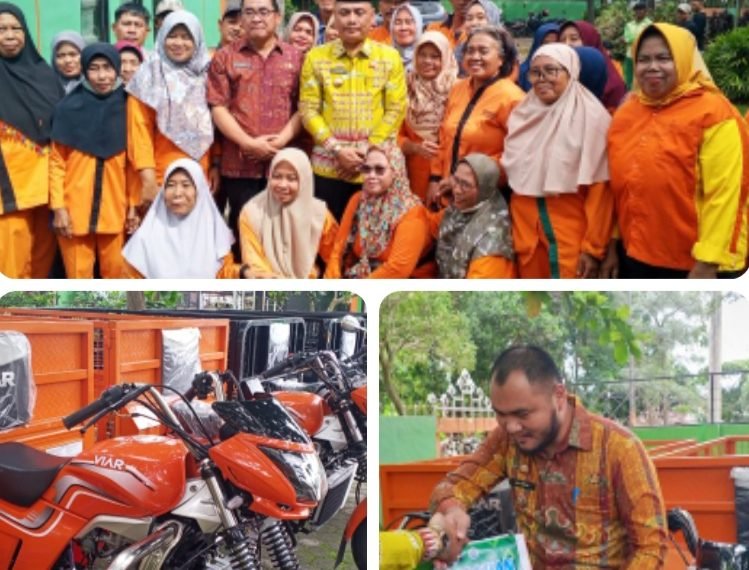 โTujuan pemberian bantuan kali ini untuk memperkuat pengumpulan sampah di tingkat kelurahan dan mendorong pengelolaan sampah pada sektor usaha dan pelayanan publikโ ungkap Wali Kota.