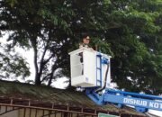 “Hari ini Saya membersihkan sampah daun dan ranting diatap Kantor Kepala UPTD Terminal 16C” pungkas Walikota Metro. Krisna/ Andre DF.